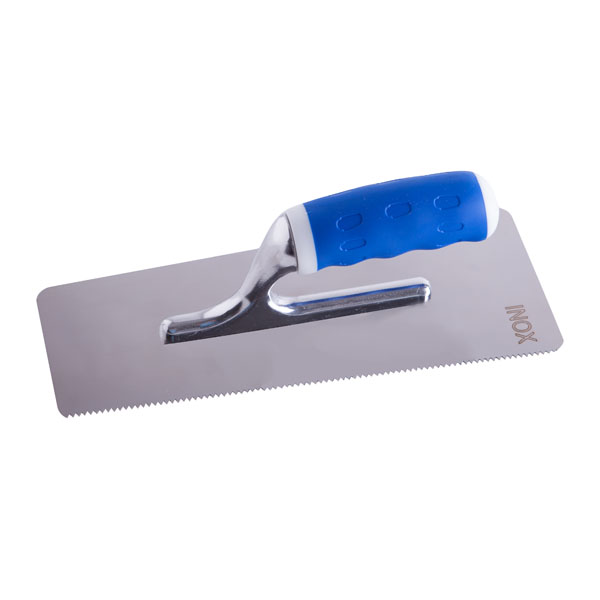 The double blade allows the application of the product with the toothed part and the smoothing with the lamata part.