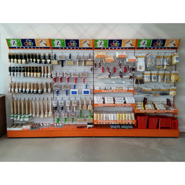 1) un metro dedicato ai pennelli, con N. 35 ganci doppi, completi di portacartellino per descrizioni e bar code.