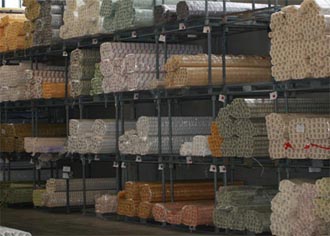 1) Stoccaggio dei rotoli di tessuto.